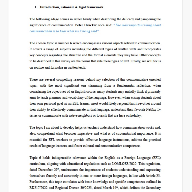 Finally, the topic explores routines and formulae commonly used in specific written forms, such as postcards, formal and informal letters, application forms, CVs, summaries, and reports —each with its own structure and set phrases that facilitate communication.