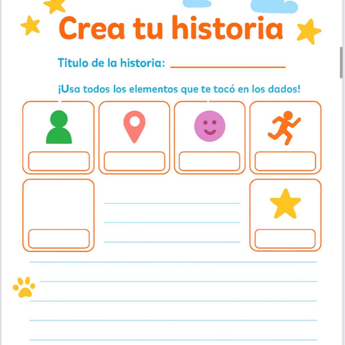 🎲 Dados mágicos de aventuras (animales 🐻, personajes 🧙♂️, emociones 😊, objetos 🎒 y acciones 🚀)