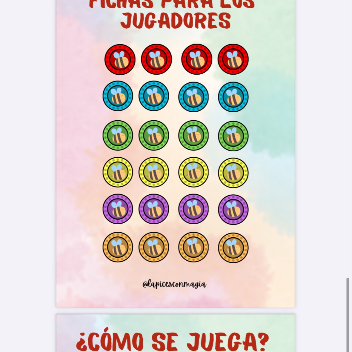 🎴 24 fichas de jugador, tematizadas por colores