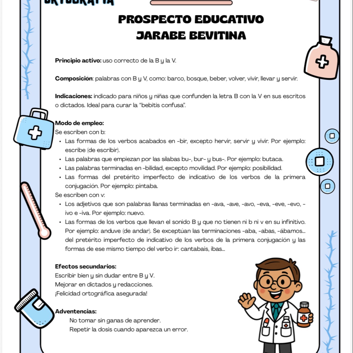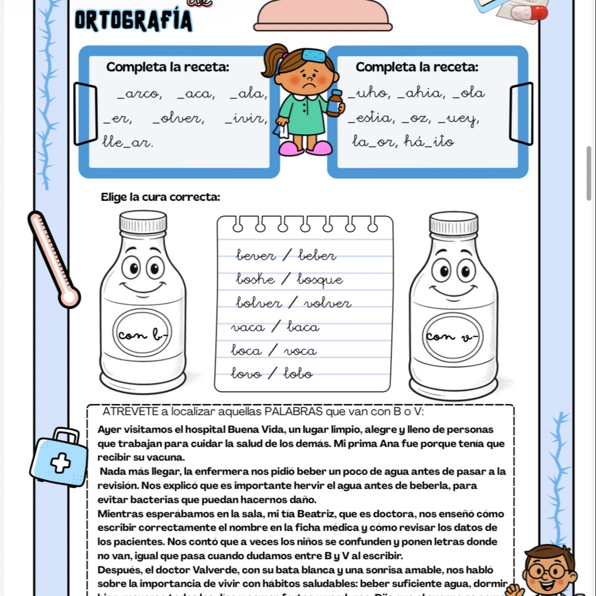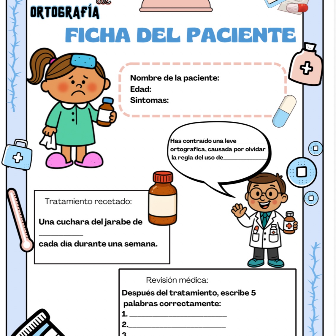 🏥 Cada palabra “enferma” necesita la ayuda de tus pequeños doctores para ser curada con los mejores remedios: tildes, puntos, comas y reglas mágicas.