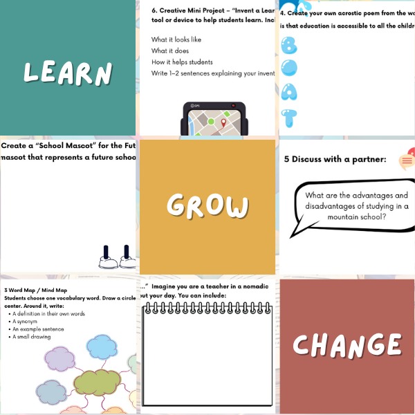 Este dossier de 6 lecturas auténticas y motivadoras invita a los estudiantes a viajar por escuelas reales en distintos lugares del planeta: