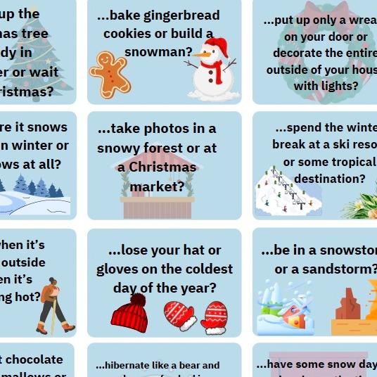 These cards are ideal for group activities in the classroom, pair work, or even individual lessons. Whether you are looking for an icebreaker or a way to practice speaking skills in a relaxed, holiday-themed setting, these cards provide a dynamic, festive way to engage your students.