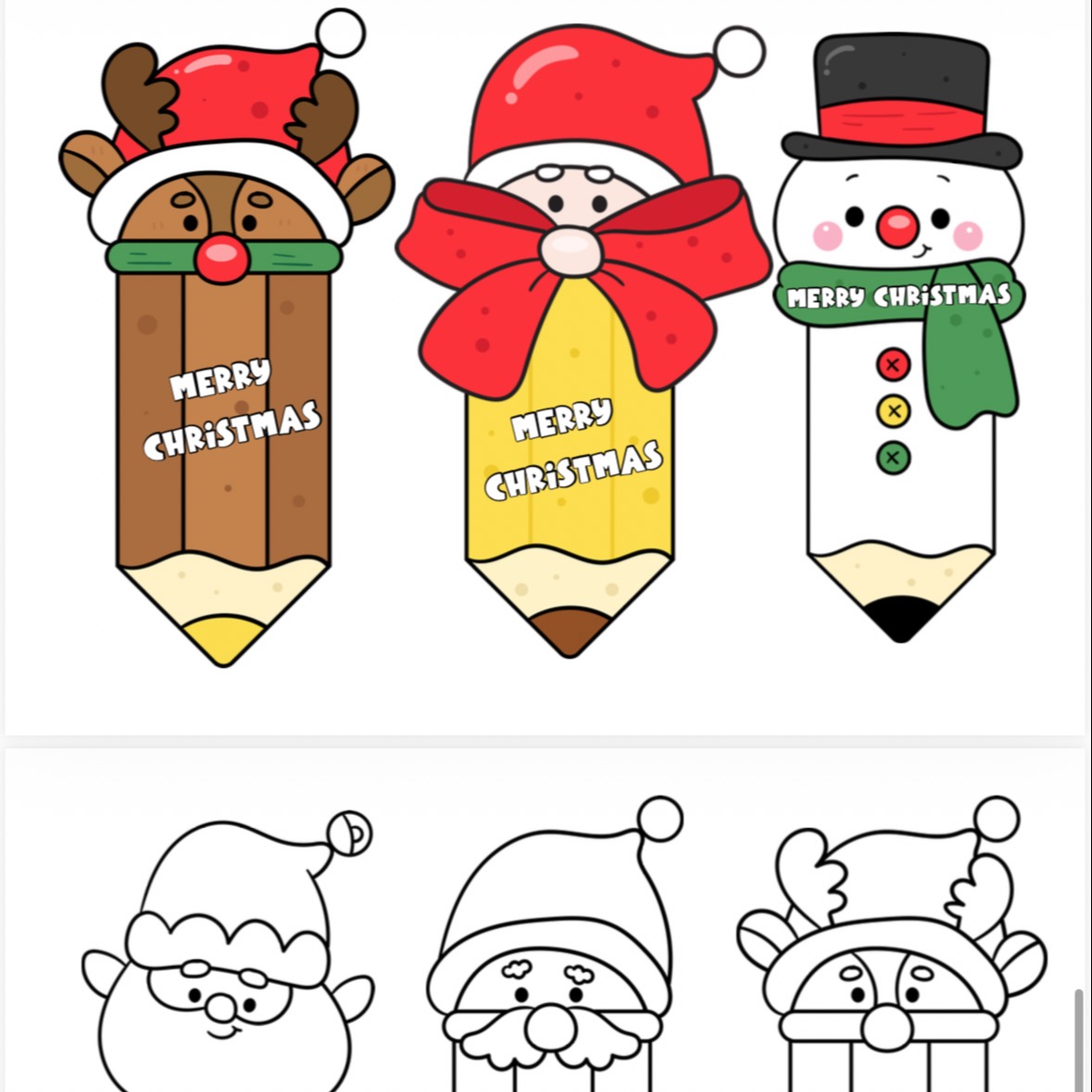 Los lápices animados son ideales para motivar a los niños a escribir, leer y crear durante la temporada navideña. Su diseño alegre y colorido los convierte en un recurso perfecto para el aula, talleres creativos o actividades en casa 🖍️📚