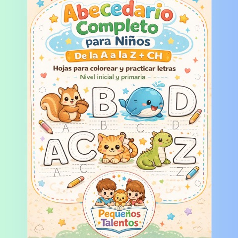 Abecedario Completo para Colorear y Caligrafía (A-Z) - Incluye CH y LL