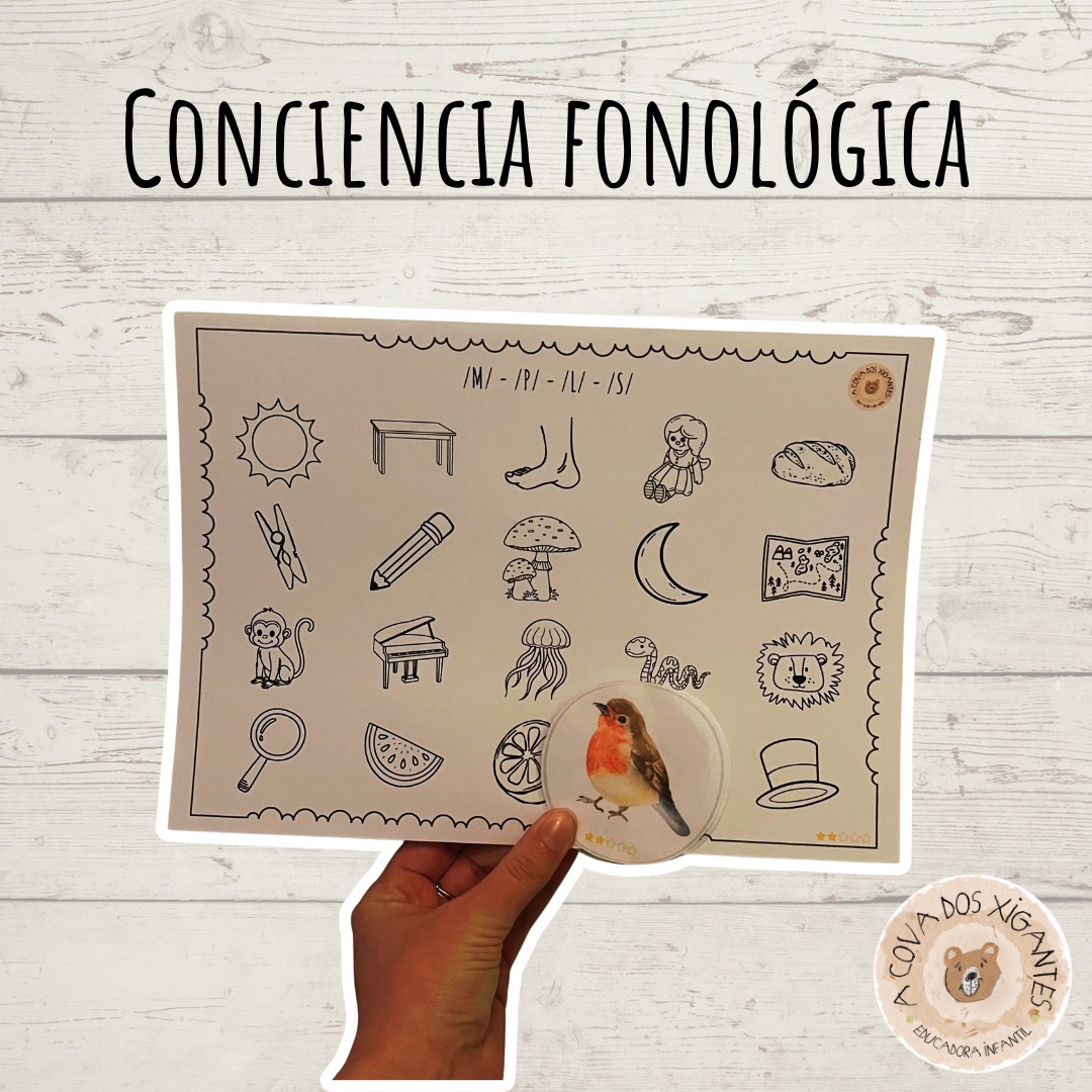 El material contiene 23 imágenes correspondientes a los 23 fonemas (no se incluye el fonema /r/ ya que tabajamos sonidos iniciales) y, estos, a su vez, están agrupados en 5 niveles según su dificultad (atendiendo a su frecuencia de uso, su variación...):
