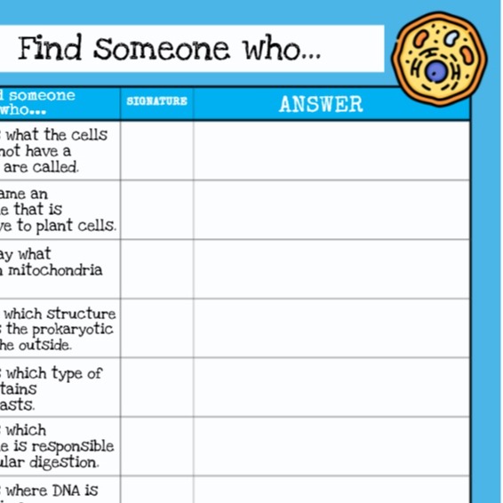 ENCUENTRA A ALGUIEN QUE... CÉLULA 1ºESO en INGLÉS/ESPAÑOL. EDITABLE en Genially.