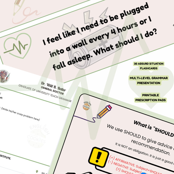 ¡Bienvenido a The Advice Clinic! Este recurso pedagógico rompe con la monotonía y reta a tus alumnos a convertirse en "Doctores del "What-Do-I-Do Institute" para resolver las emergencias más bizarras jamás vistas.