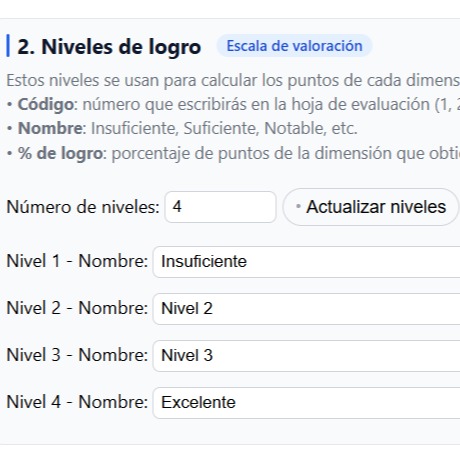 generar automáticamente una estructura de rúbrica con niveles de logro