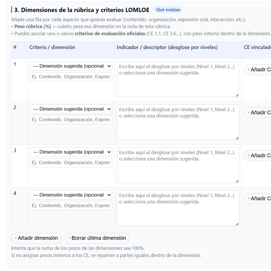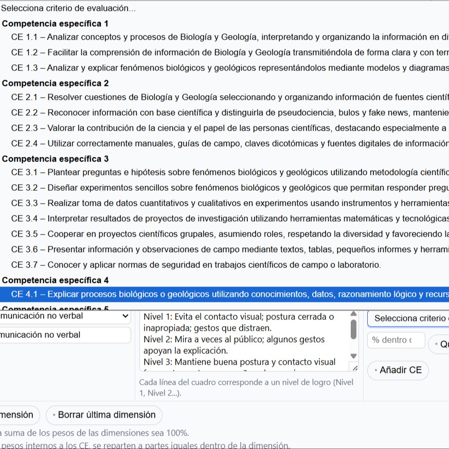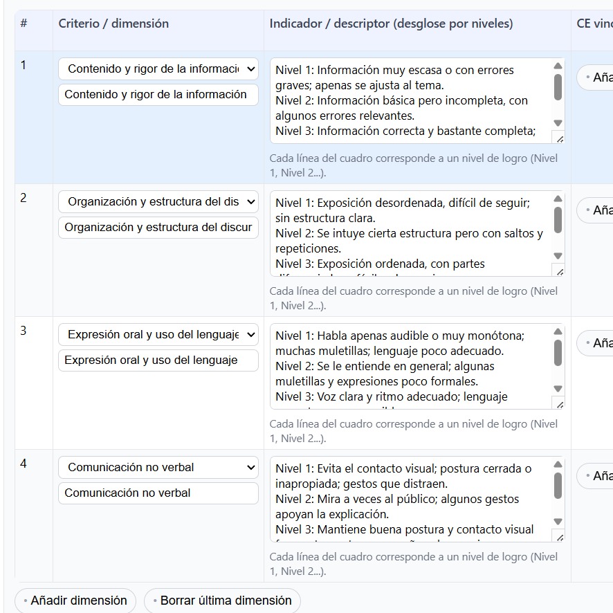 Permite crear rúbricas de evaluación alineadas con los criterios de evaluación.