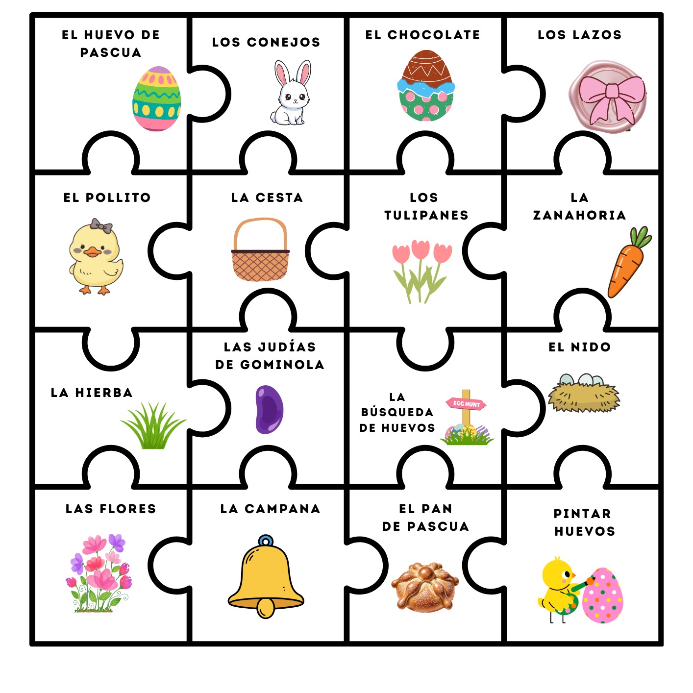 ✔️ 1 puzzle recortable con vocabulario de Pascua