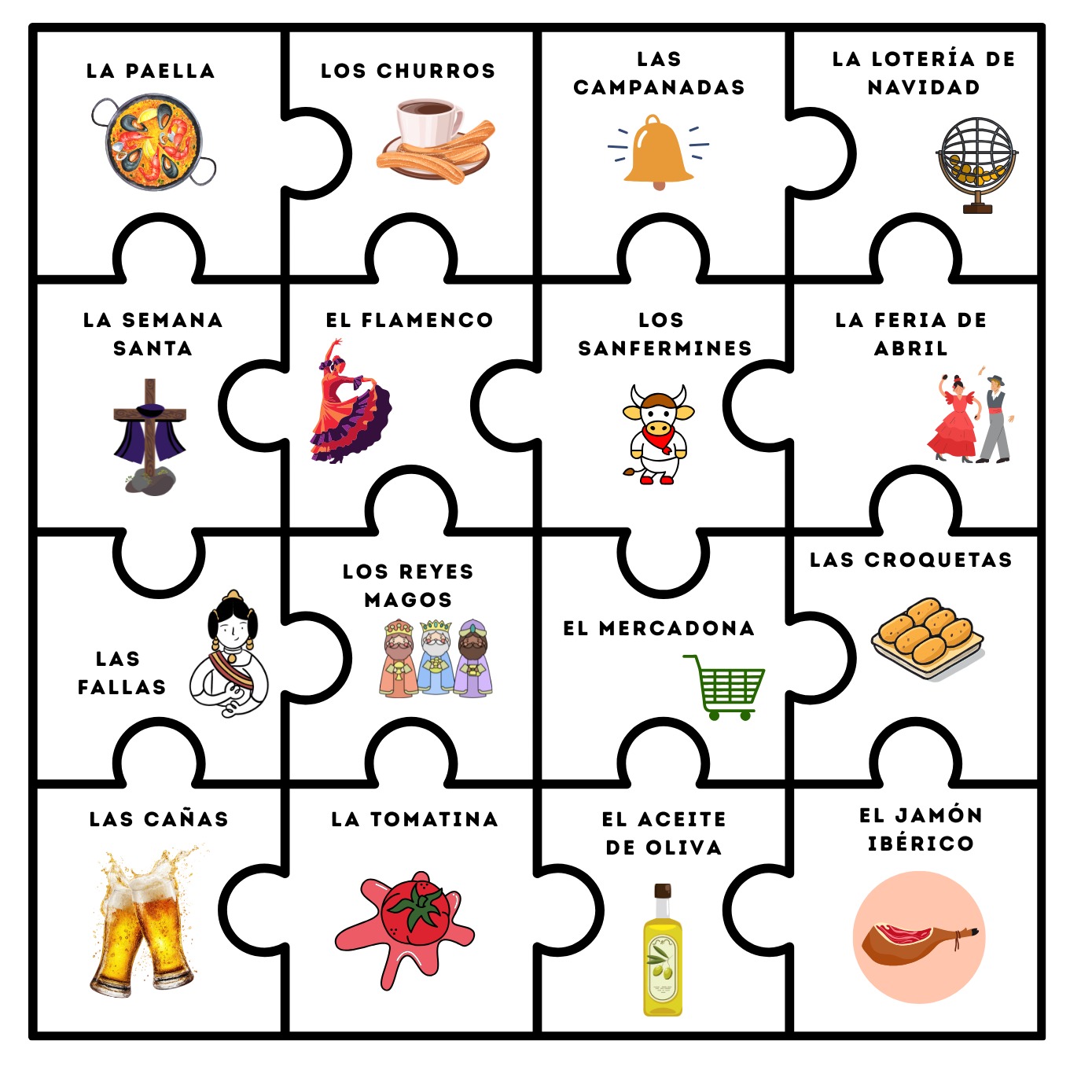 📌 Ideal para niveles A1–B1, tanto en ELE, inmersión, clases de español o cultura hispana.