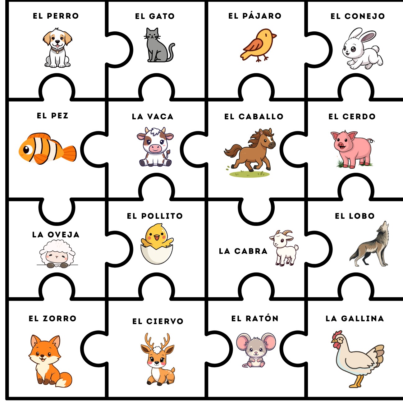 ✔ 1 puzzle recortable de animales