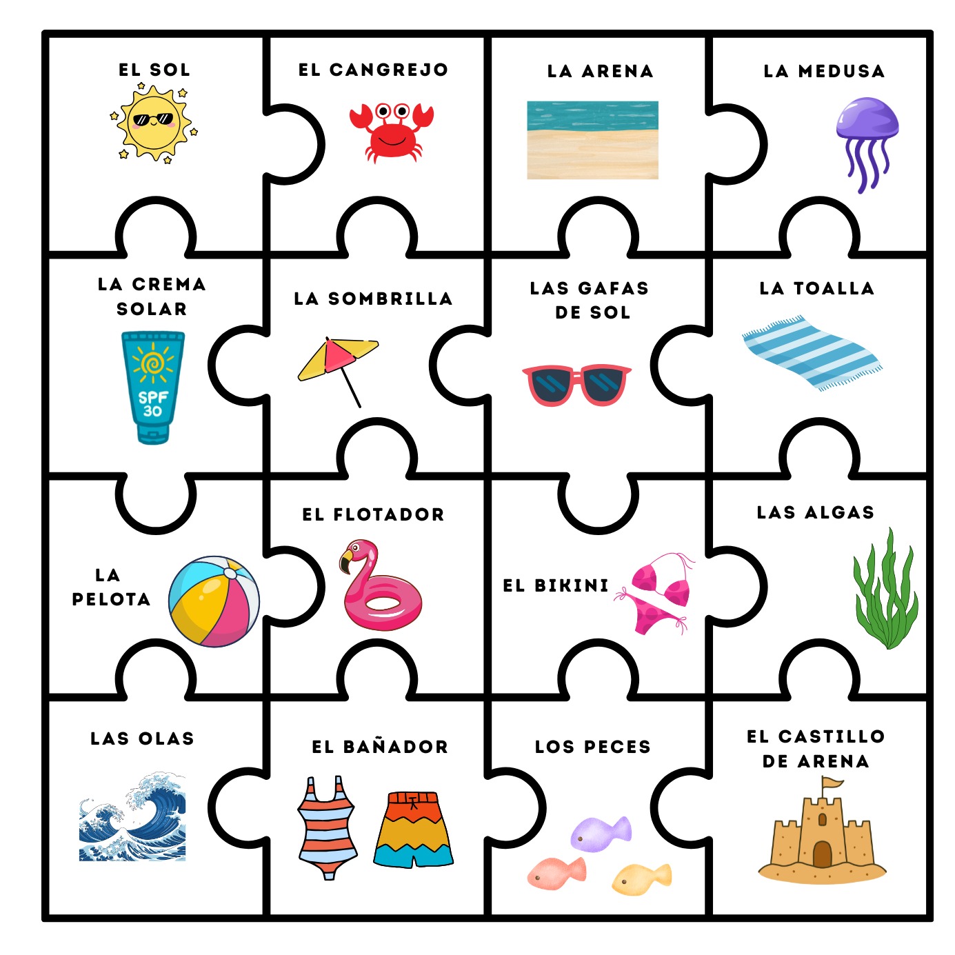 ✔ Puzzle de vocabulario de la playa