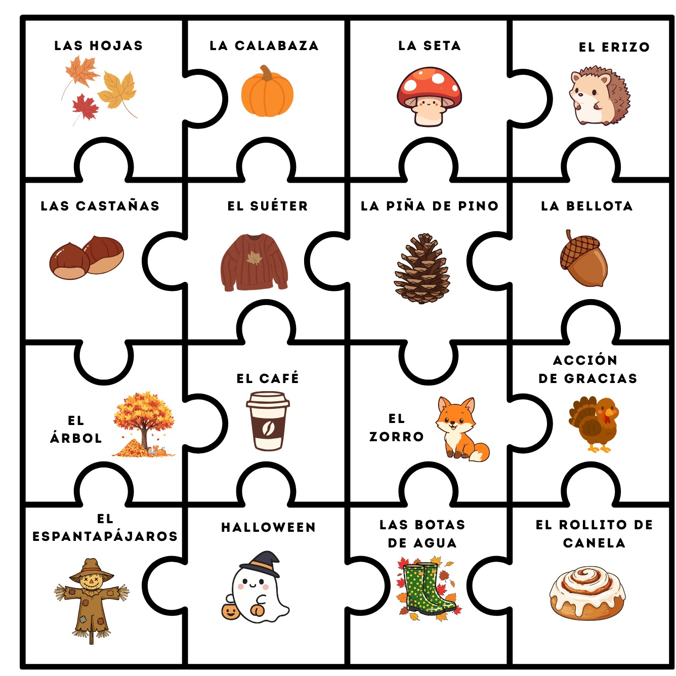 ✔ Puzzle recortable de vocabulario de otoño