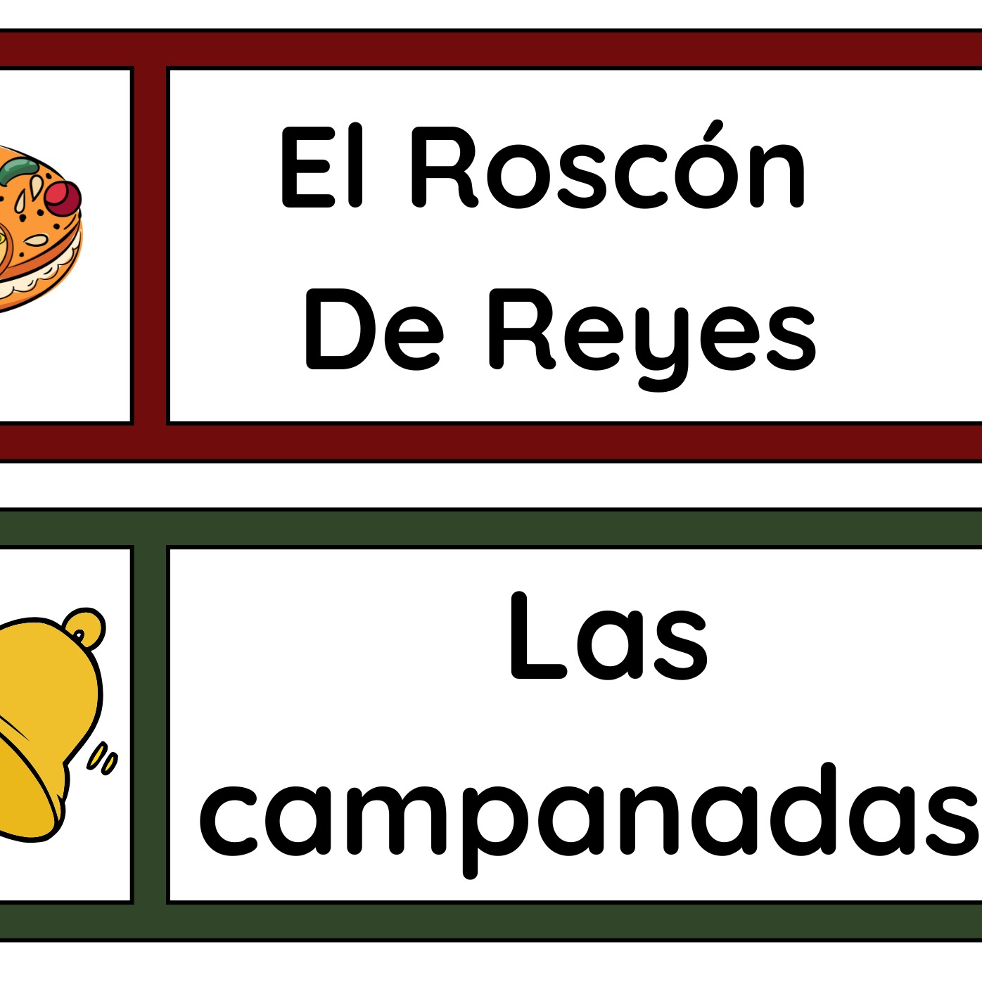 🎅 Word Wall de Navidad en España – 24 tarjetas de vocabulario navideño (rojo y verde)