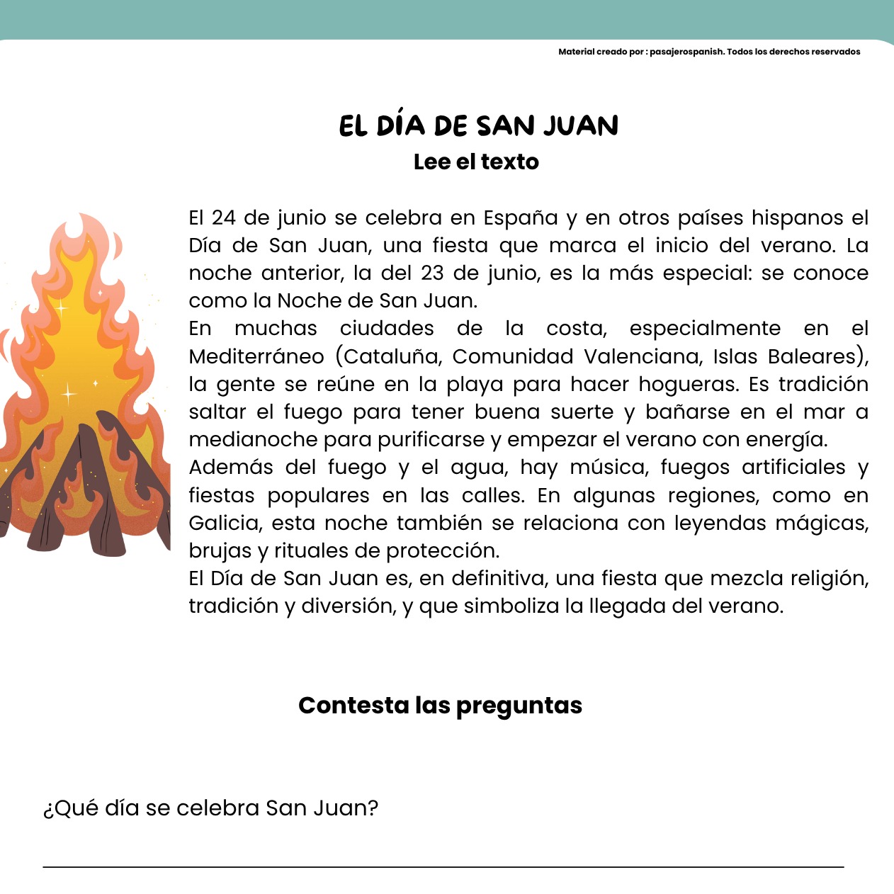 🔥 Spanish Reading: St. John’s Day (El Día de San Juan)