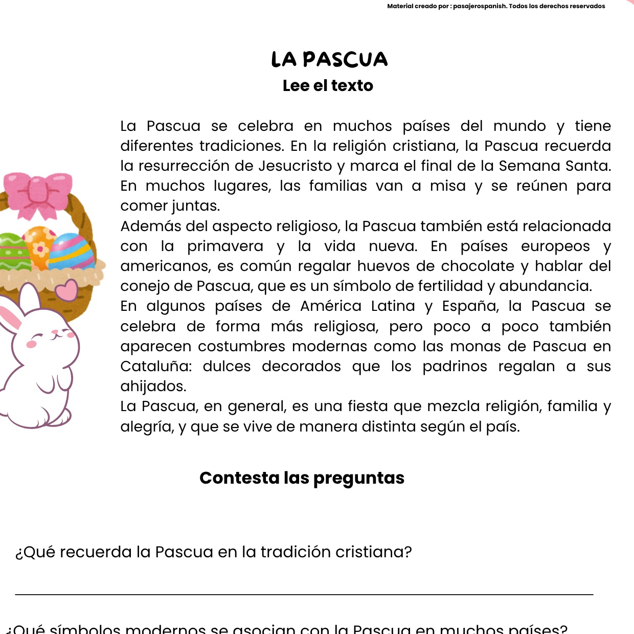 Lectura en español: La Pascua