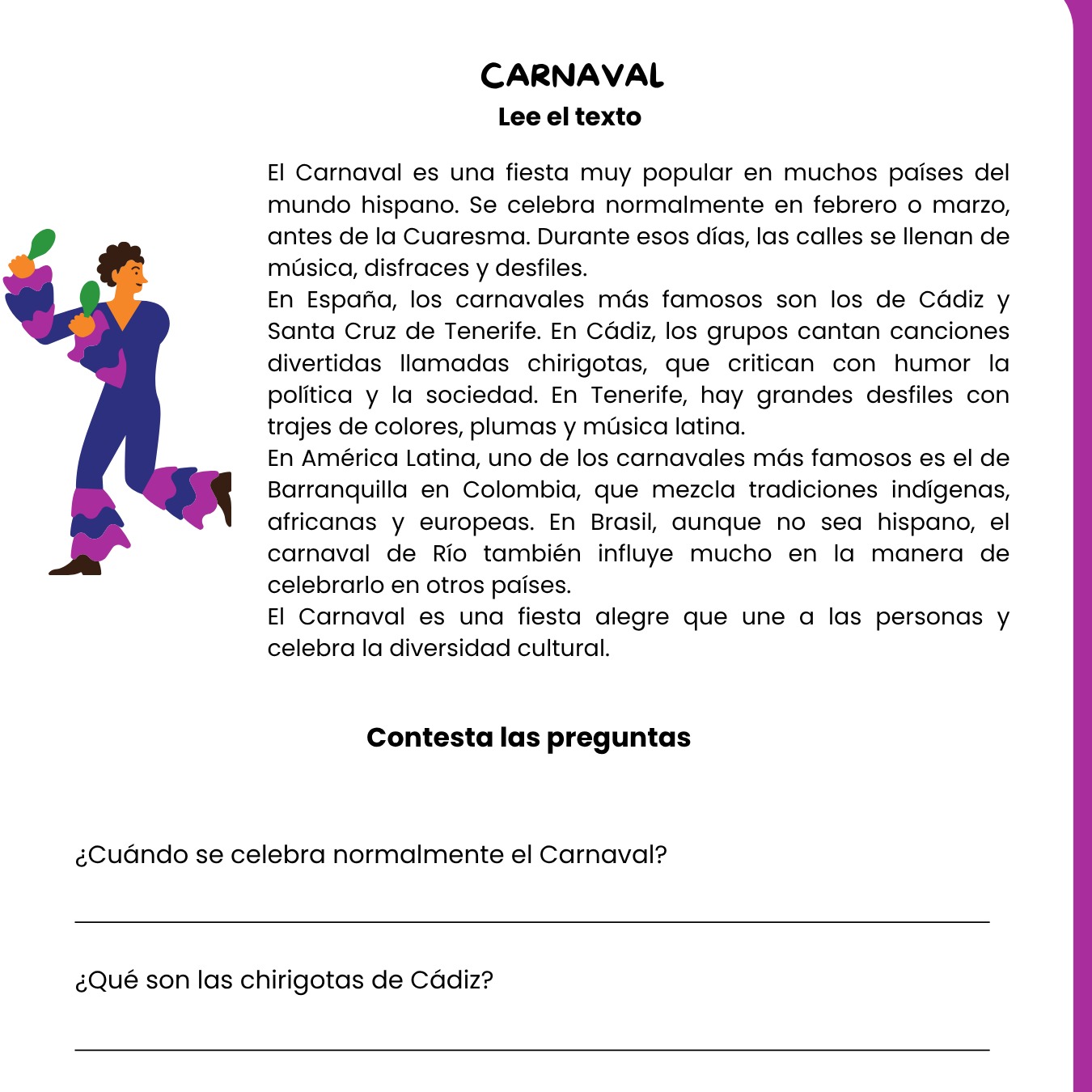 ✨ Perfecto para trabajar fiestas y tradiciones culturales en febrero o marzo, y para motivar a los estudiantes con un tema alegre y colorido.