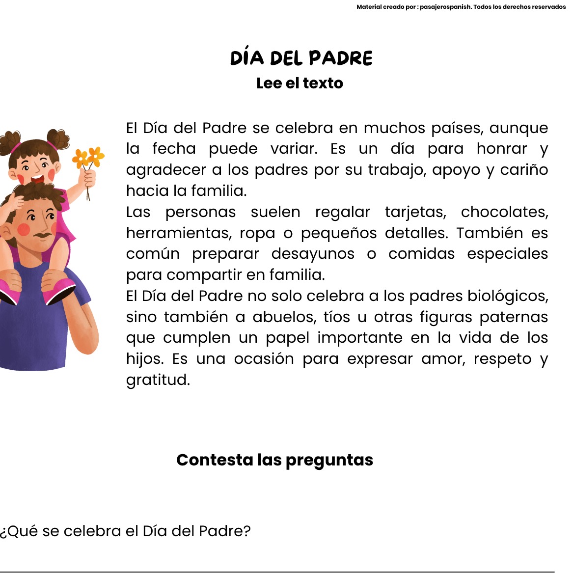 DIA DEL PADRE FATHERS DAY READING IN SPANISH