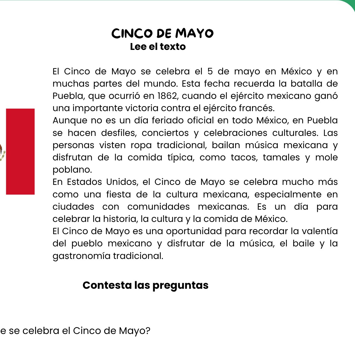 CINCO DE MAYO COMPRENSIÓN LECTORA