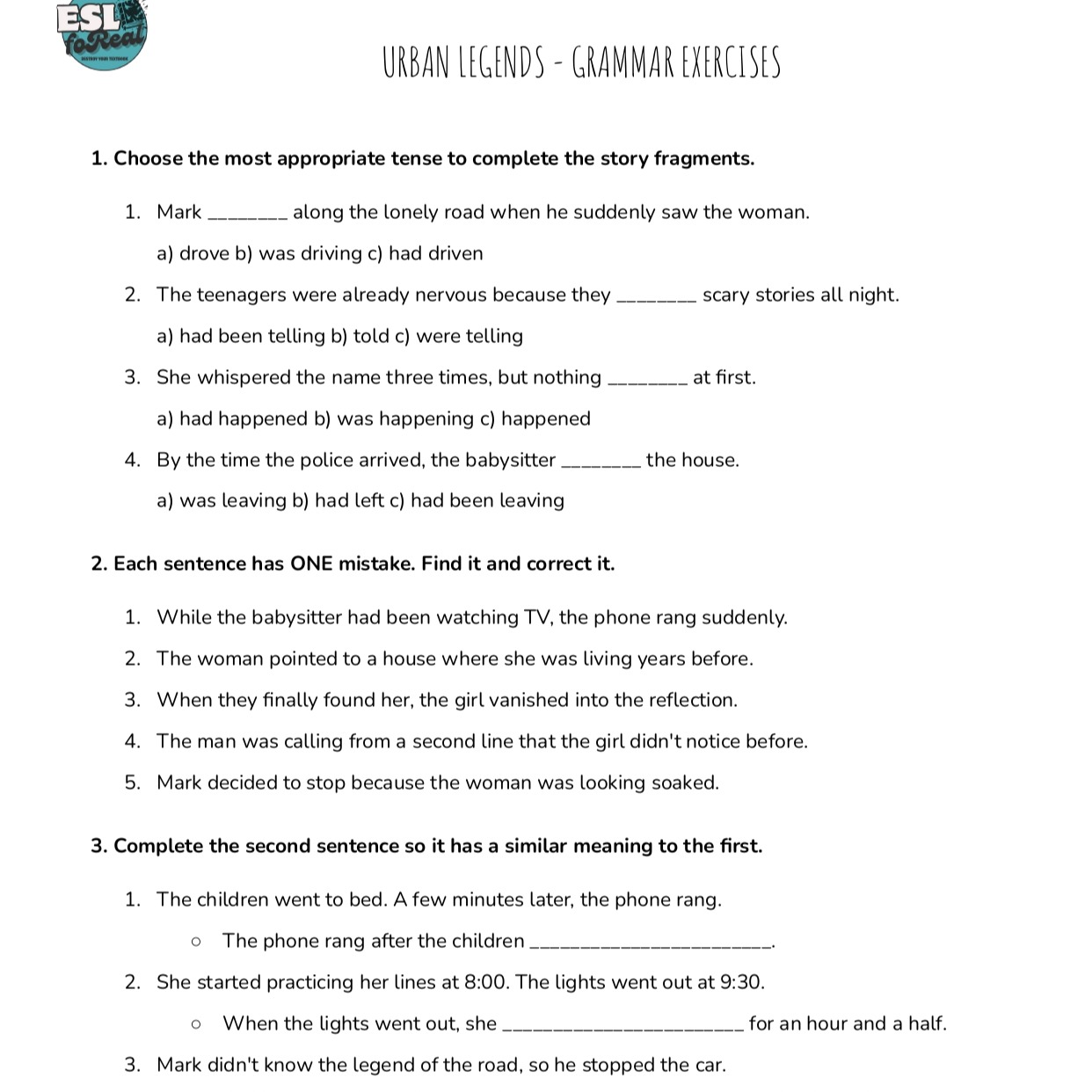 Narrative Tenses Mastery: 3 Urban Legends Dictogloss Pack (B2)