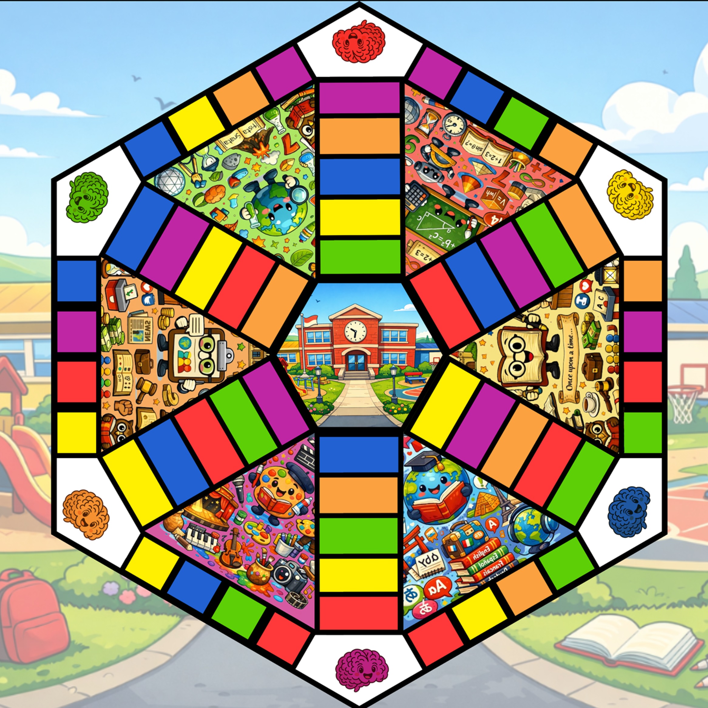 Casillas: Al caer en una casilla de color, se toma una tarjeta de pregunta de la categoría correspondiente, los adversarios la leerán en voz alta.