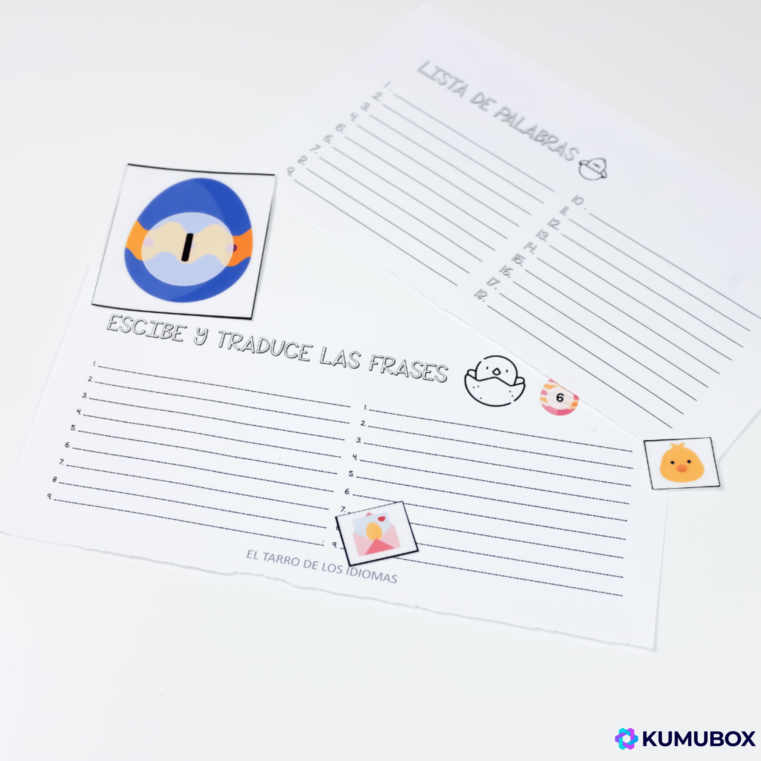 - Inclusión de tarjetas bilingües (inglés/español) para refuerzo visual y auditivo.